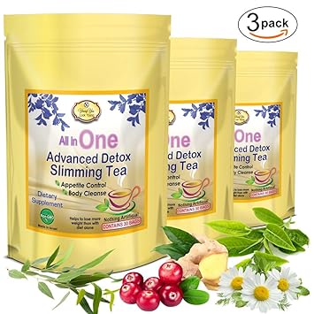 All In One Weight Loss Tea Detox And Cleanse Appetite Suppressant Energy Booster And Colon Cleanser 3 Packs