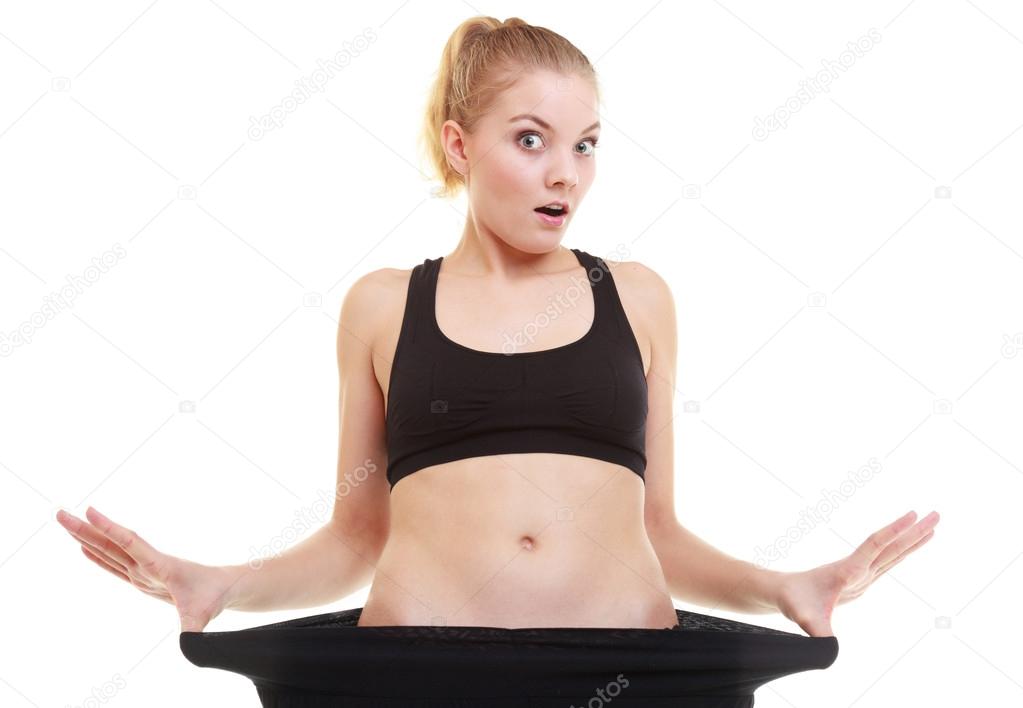 Happy Woman Showing How Much Weight She Lost Big Pants
