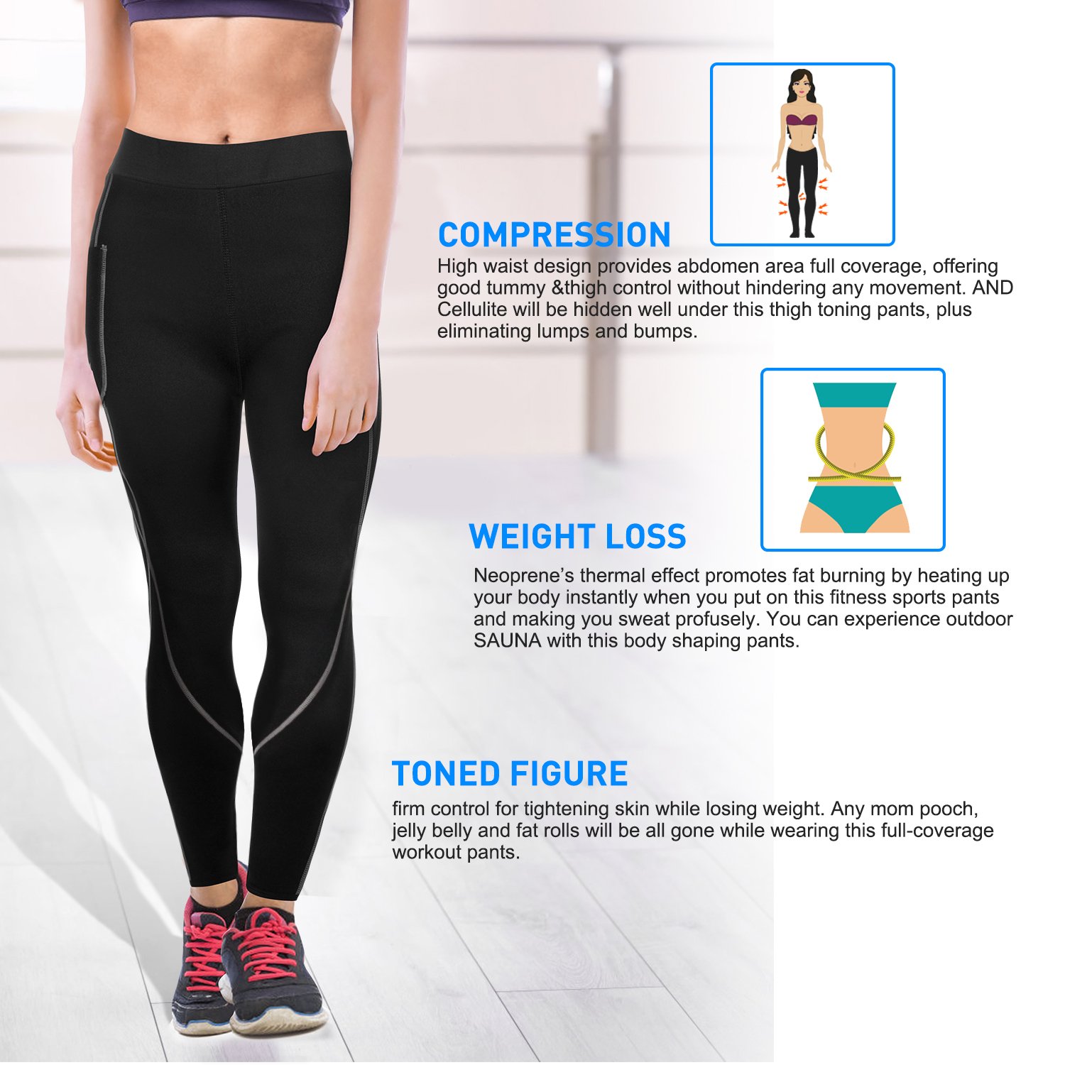 Wonderience Women Sauna Weight Loss Slimming Neoprene Pants With Side Pocket Hot Thermo Fat Burning Sweat Leggings